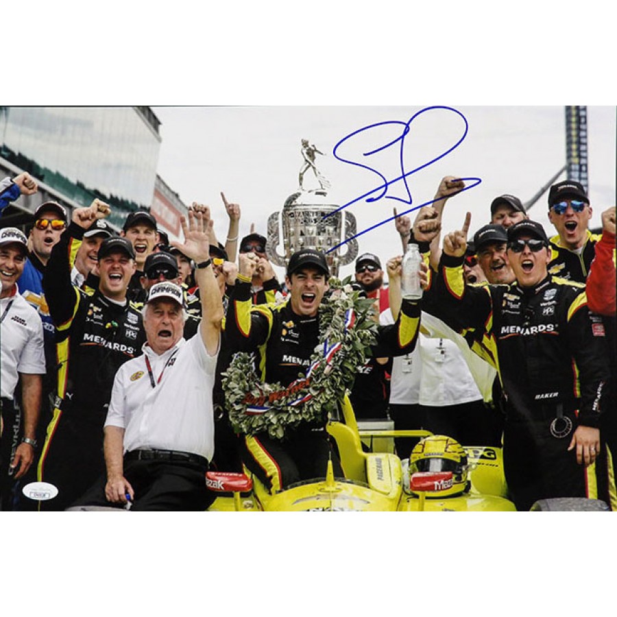 Signed Simon Pagenaud 12x18 glossy finish photo in blue sharpie. This item has been certified by James Spence Authentication (JSA) with sticker affixed to item and matching card.