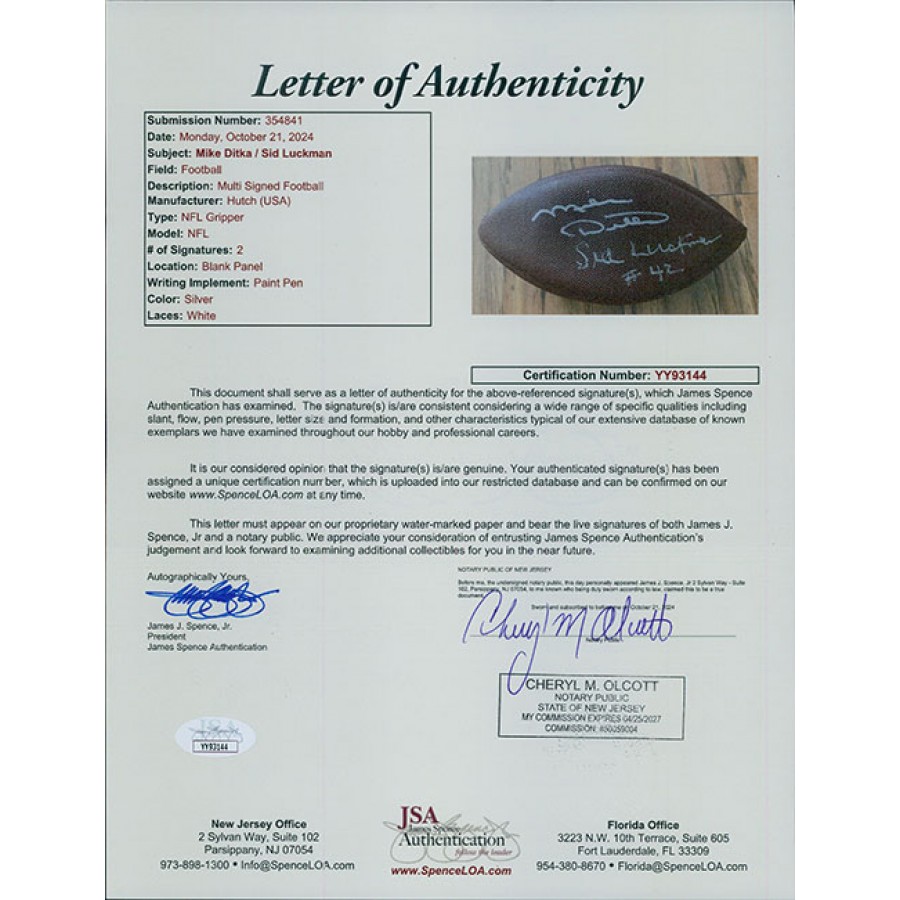 Chicago Bears Mike Ditka Sid Luckman Signed NFL Gripper Football JSA Authentic