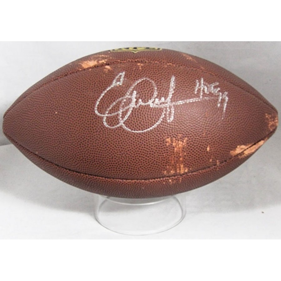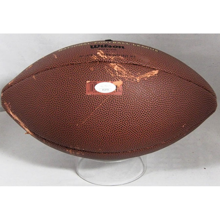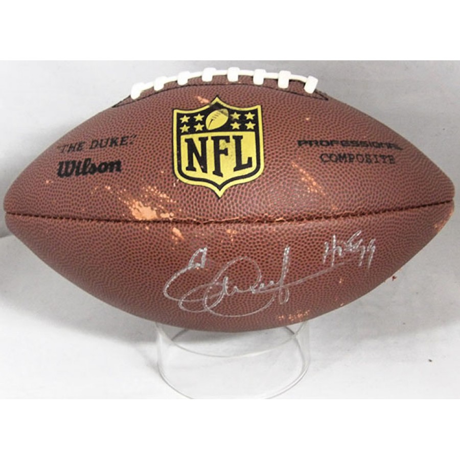Signed Eric Dickerson Wilson NFL The Duke football in silver ink. The football has scuffing throughout. This item has been certified by James Spence Authentication (JSA) with sticker affixed to item and matching card.