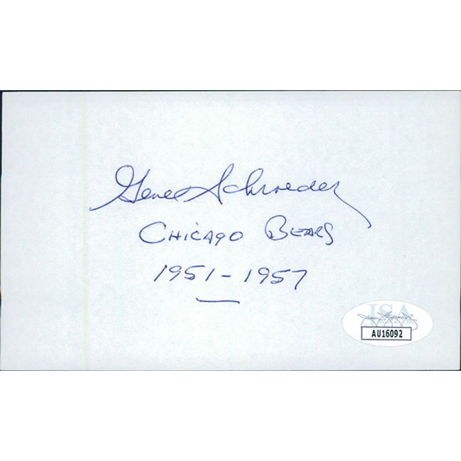 Gene Schroeder Chicago Bears Signed 3x5 Index Card JSA Authenticated