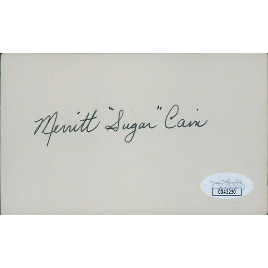 Merritt Sugar Cain Philadelphia Athletics Signed 3x5 Index Card JSA Authentic