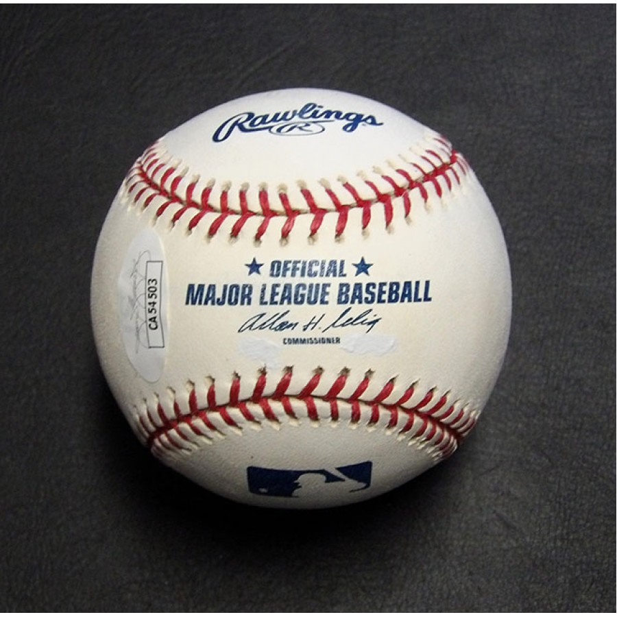 Signed Nick Johnson Rawlings official Major League Baseball in blue pen on the sweet spot. The signature is light and has fading to it. This item has been certified by James Spence Authentication (JSA) with sticker affixed and matching card. There is some white marks on the back of the ball.