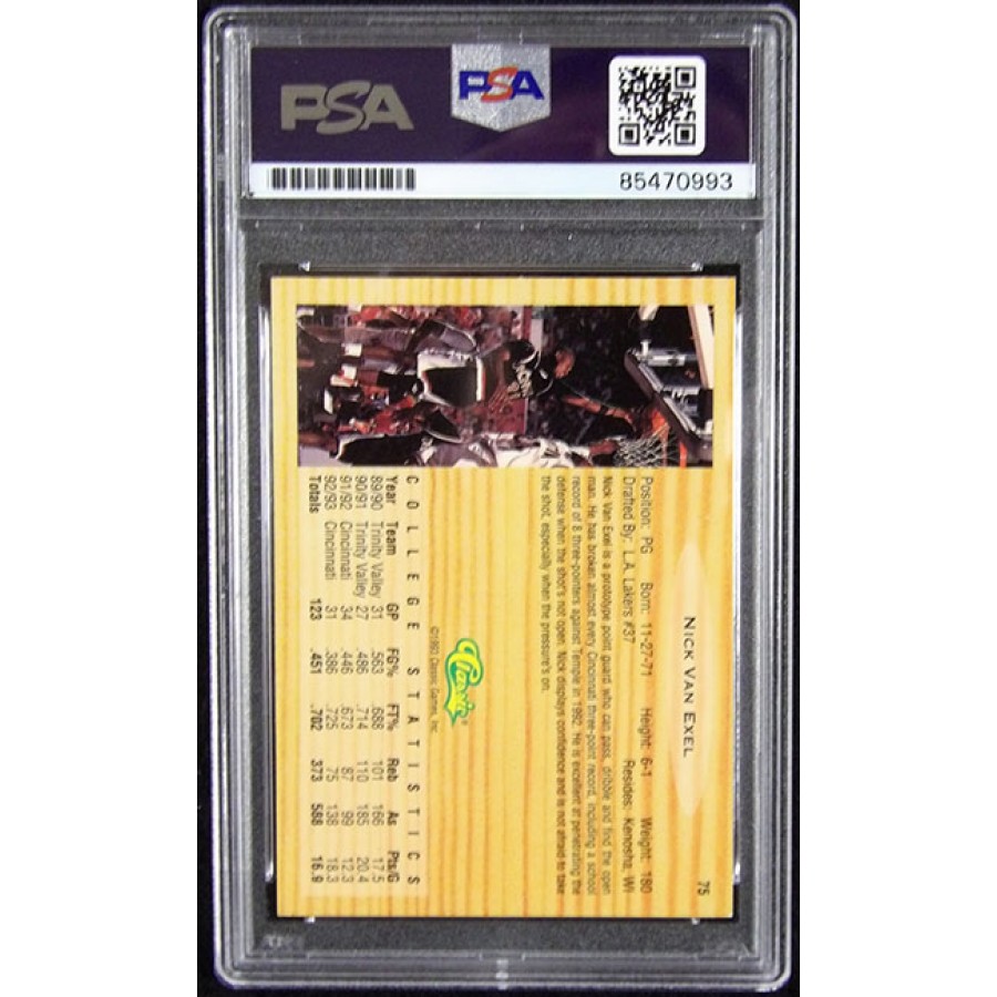 Signed Nick Van Exel 1993 Classic Games Draft Picks basketball card #75 in black ink. This item is certified by Professional Sports Authenticator (PSA) encapsulated.