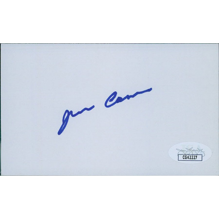 Signed Jim Cason 3x5 index card in blue sharpie. This item has been certified by James Spence Authentication (JSA) with sticker affixed to item and matching card.