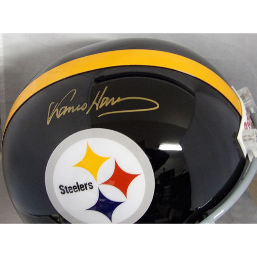 Signed Franco Harris Pittsburgh Steelers Riddell full size helmet in gold ink. This item has been certified by James Spence Authentication (JSA) with sticker affixed to item and matching card and Steiner Sports with sticker affixed to the item.